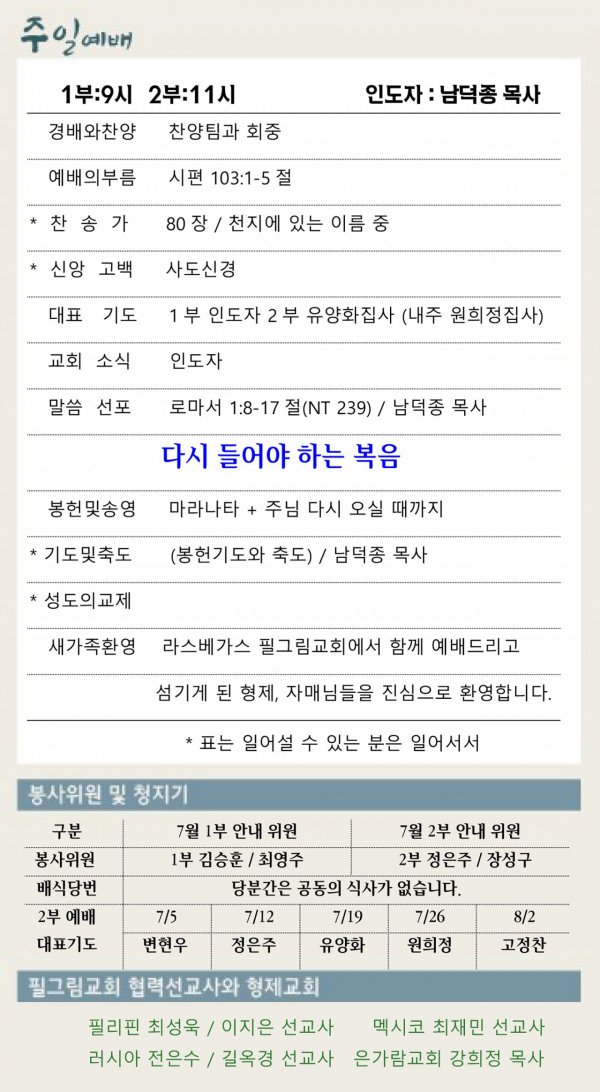 2020년 7월 19일 주일 온라인 주보